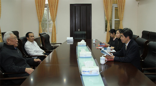 本网讯 3月16日,省人大代表、我会法律顾问、广东国鼎律师事务所主任、高级律师朱列玉(右)一行3人到访我会,我会常务副主席程良洲、秘书长蔡延钊向客人介绍了我会公益项目的情况,并就公益慈善事业规范管理、阳光运作等热点问题进行了交流,为双方今后的进一步合作奠定了基础。