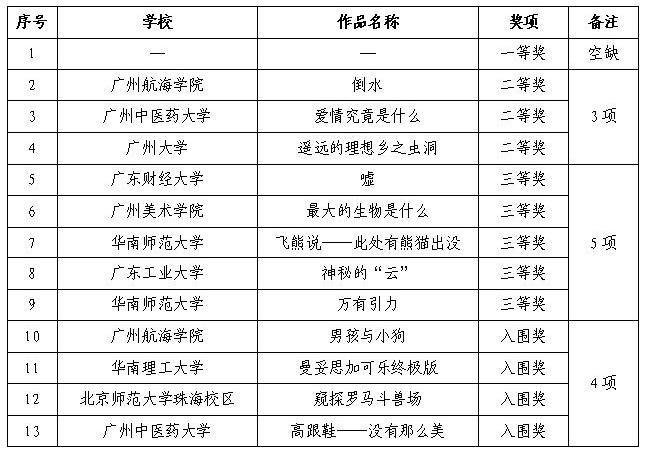 二、首届广东省大学生科学影像大赛动漫组获奖名单