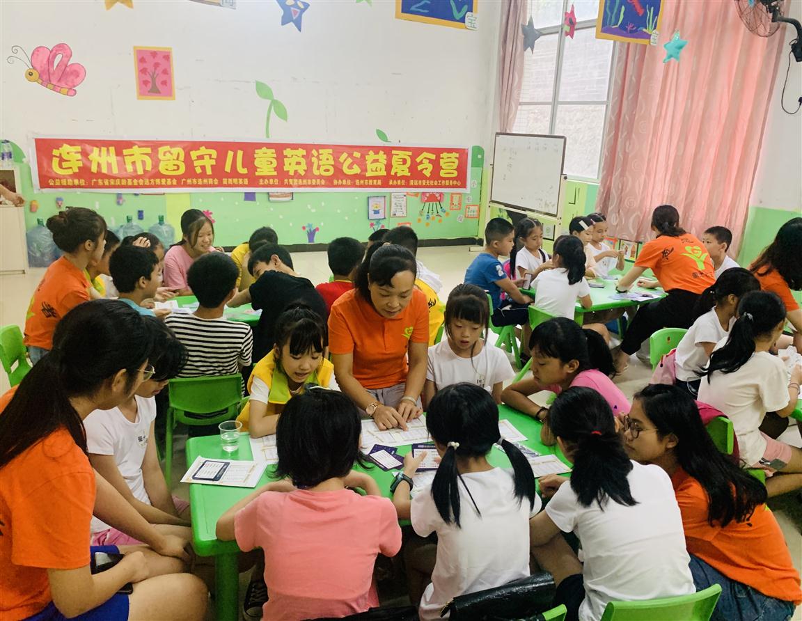 2020年8月10日至14日,为贯彻落实“两帮两促”工作,助力山区教育,由广东省宋庆龄基金会远方博爱基金援助的连州市留守儿童英语公益夏令营在连州市青少年宫顺利开营,连州市团委组织19名志愿者,全力支持为期5个半天的夏令营活动,广东省宋庆龄基金会远方博爱基金、广州市连州商会和简而明英语为参加活动的40名儿童联合捐赠英语电脑软件、简明译APP正式版等价值12万元的教学用品40套,为连州山区儿童教育事业奉献爱心。夏令营的课程涵盖英语教育、安全教育、情商培养等内容,为山区儿童培养积极健康的学习生活态度,激发山区儿童学习英语课程的兴趣,提升留守儿童自我安全防护意识,关爱留守儿童身心健康成长。