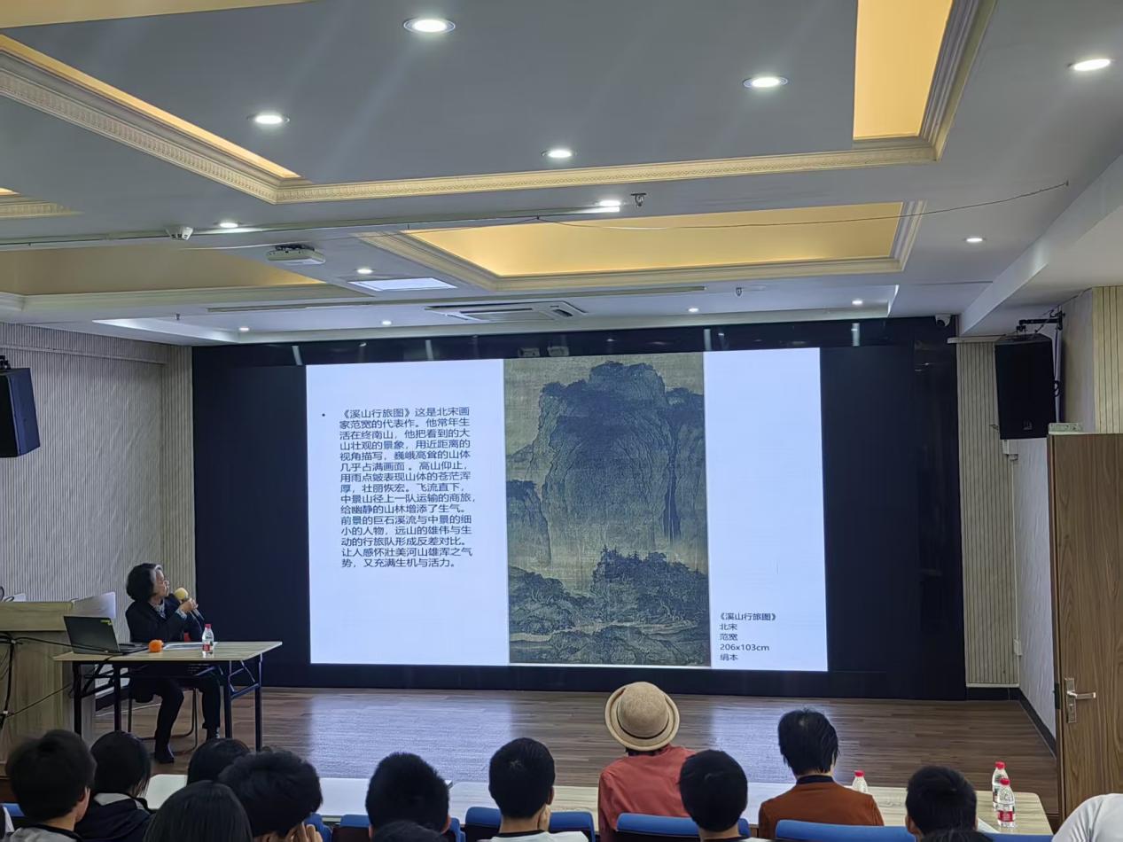 在学校演讲厅,广州美术学院岭南画派纪念馆原常务副馆长、二级美术师林淑然老师聚焦“提升审美力”这一核心问题,讲述了审美力在当下及未来的重要价值。她指出,审美力已不再是单纯的艺术素养,更是未来社会发展中的核心竞争力,直接影响个人对世界的认知与创造力的发挥。尤其在AI时代,人类不仅要自身具备高水平审美力,更肩负着训练AI审美的使命,让艺术与现代科技融合,才能创造出具有温度与内涵的成果。在国画品鉴环节,林老师结合她与方楚雄老师的艺术创作心得,以及赏析古今经典国画作品,深入浅出地讲解了中国画作中“外师造化,中得心源”“形神兼备,超越表面的美”“以线造型、笔墨之美,简约中的丰富”“计白当黑,留白的智慧”“写意与抽象,想象力的翅膀”这五个方面,阐述了中国绘画是诗性绘画、审美绘画的特性,它不是现实的复制,而是超越现实,融入想象、情感和独特的个人审美的创造。林老师还指出,在艺术学习与探索中,既要保持童真与天马行空的想象力,敢于突破思维局限,积极尝试艺术创作,又要不断学习、持续积累,在实践中打磨历练,才能提高自身素质和审美水平。