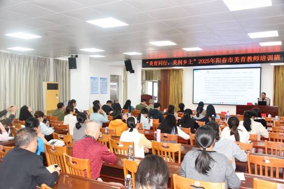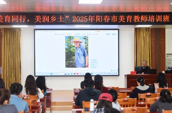11月14日下午,“美育同行·美润乡土”教学交流活动开班仪式在阳春市教师发展中心举行。活动上,谢桃代表阳春市教育局对活动的成功举办表示欢迎和祝贺。陈美霞作为主办单位代表致辞,表示希望美育的种子在阳春的土壤中生根发芽,让艺术真正成为“以美育人、以美润村、以美兴旅”的生动实践。陈美霞还向阳春市教师发展中心致送陈树人纪念馆特色文创。肖彬代表广东省宋庆龄基金会向陈许、赵健两位美育专家颁发荣誉证书,感谢他们为基层美术教师专业素养与教学能力提升所做出的积极努力。开班仪式后,赵健、陈许分别作了《绘画背后的逻辑——漫谈绘画艺术语言》《工业的诗意:从港珠澳大桥到油画创作的美育对话》专题讲座,并进行交流互动,学员们踊跃提问,现场氛围热烈。