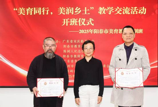 2025年11月14日至16日,由广东省宋庆龄基金会主办,阳春市教育局、陈树人纪念馆联合主办,阳春市教师发展中心协办,广东岭南诗书画研究院支持的“美育同行·美润乡土”教学交流活动在阳春市成功举行。活动旨在贯彻落实省委省政府“百县千镇万村高质量发展工程”,弘扬宋庆龄“缔造未来”理念,助力阳春市中小学美术教师专业素养与教学能力的提升,促进我省美术教育均衡发展。广东省宋庆龄基金会秘书长、二级巡视员肖彬,省委统战部一级调研员李长安,陈树人纪念馆馆长陈美霞,阳春市市委常委、宣传部部长张英华,阳春市教育局副局长谢桃、教师发展中心主任冯其鑫,美育专家教授陈许、赵健以及阳春市40余名中小学美育教师参加活动。