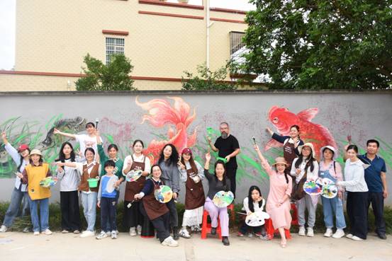 11月15日,“美育同行·美润乡土”乡村墙绘活动在阳江市潭水镇盘新禾香村举行。美育专家教授与阳春本地的美术教师、学生组成“绘美小队”,以当地特色鱼苗产业为灵感,挥毫泼彩,“鱼跃潭水”彩绘墙成为这个鱼苗孵化村的文化标识。