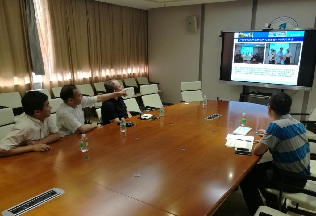2017年6月8日下午,江西省宋庆龄基金会叶明良主席在我会蔡延钊秘书长的陪同下,到广州市妇女儿童医疗中心调研救助孤残儿童基金项目,广州市妇女儿童医疗中心联络部易灵敏部长介绍了救助我会孤残儿童基金项目开展情况,三方就搭好公益平台、实施精准救助、扩大受益群体等方面进行了深入交流。